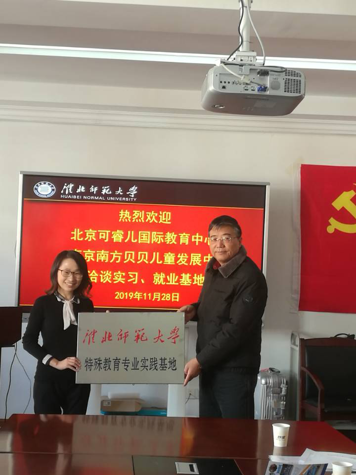 11月28日上午,教育学院与北京可睿儿国际教育中心、南京南方贝贝儿童发展中心“实习就业基地”授牌仪式在滨湖校区特教楼A306会议室举行。北京可睿儿国际教育中心与南京南方贝贝儿童发展中心一行、教育学院院长王家云、学院党委副书记鹿荣建、特教系主任蔺红春、副主任阎乃胜等共同出席了授牌仪式。
