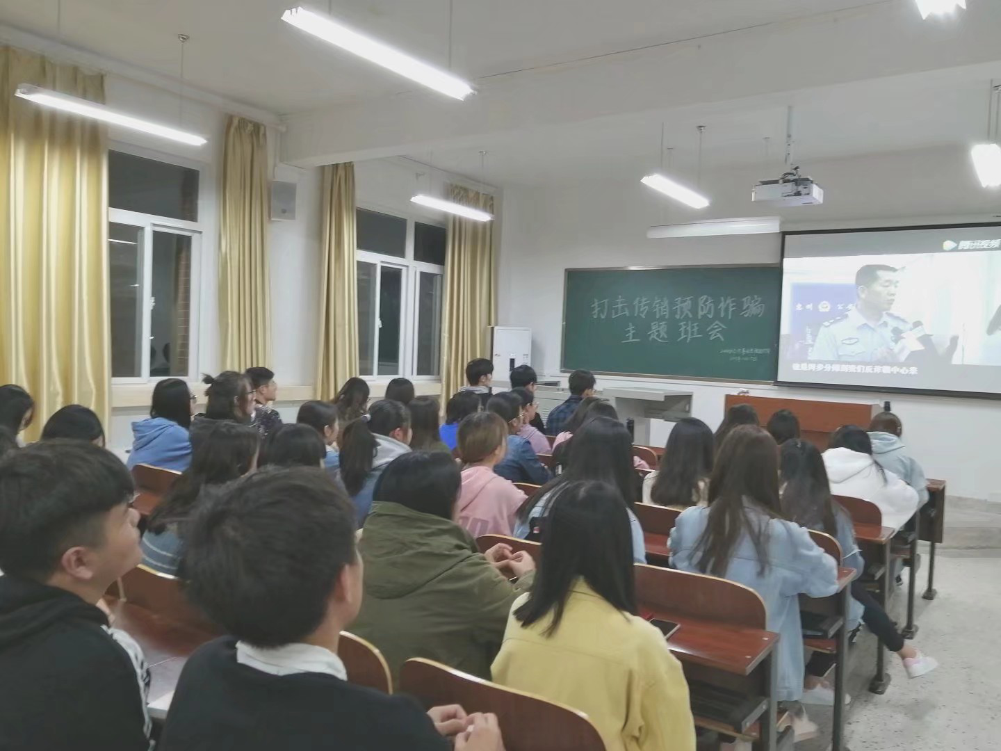 2019年11月,教育学院组织各专业、各班级、各社团以及学生会开展了各项“防范传销、校园贷”为主题的宣传教育活动,通过召开主题班会,观看打击传销、校园贷视频,防诈骗签字从我做起签字活动 ,邀请一线民警进班级讲座等形式,旨在使同学们了解各种新型的非法诈骗形式以及背后的实质,增强学生防诈骗意识,提高自我防范能力,避免遭受严重的损失。