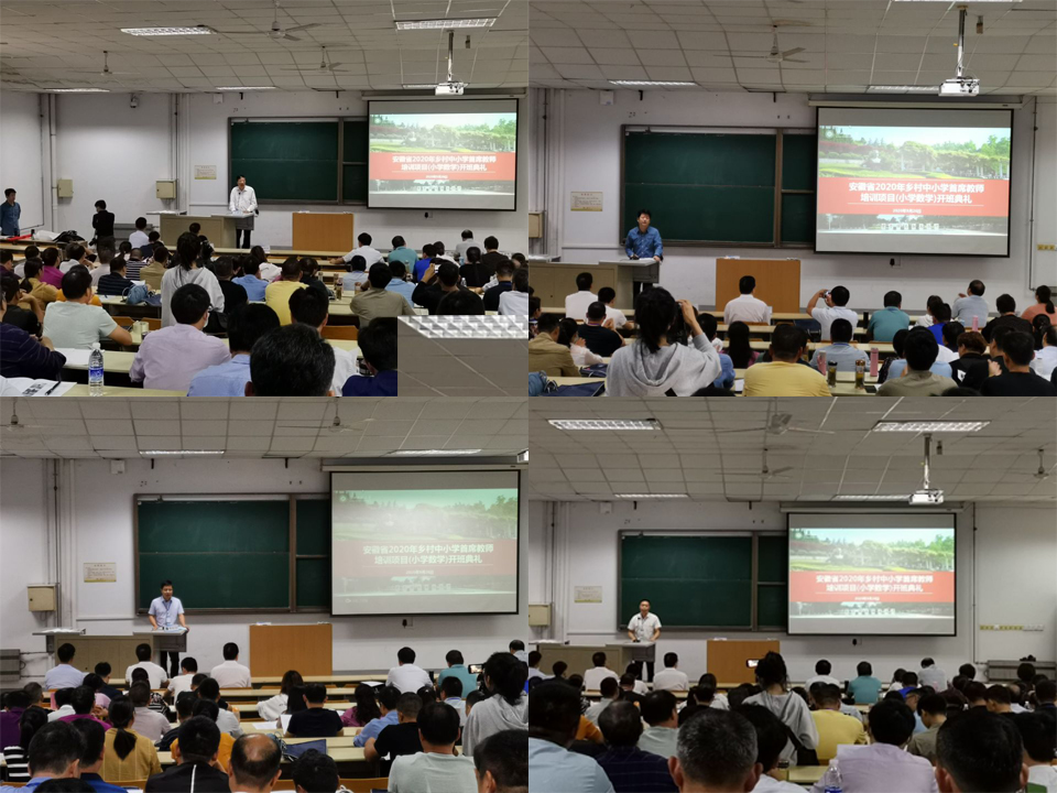 金秋九月,丹桂飘香。美丽的相城淮北迎来了参与安徽省2020乡村中小学首席教师培训项目的140名首席教师。本次培训项目由淮北师范大学教育学院承办,项目实施时间从9月26日至9月30日。9月26日下午2点半在相山校区科讲203举行了隆重的开班典礼。淮北师范大学教育学院院长王家云教授,班主任彭勃、李莹莹、张文江、张慕文以及继续教育学院赵秀莲出席开班仪式。开班典礼由淮北师范大学教育学院副教授梅松竹主持。