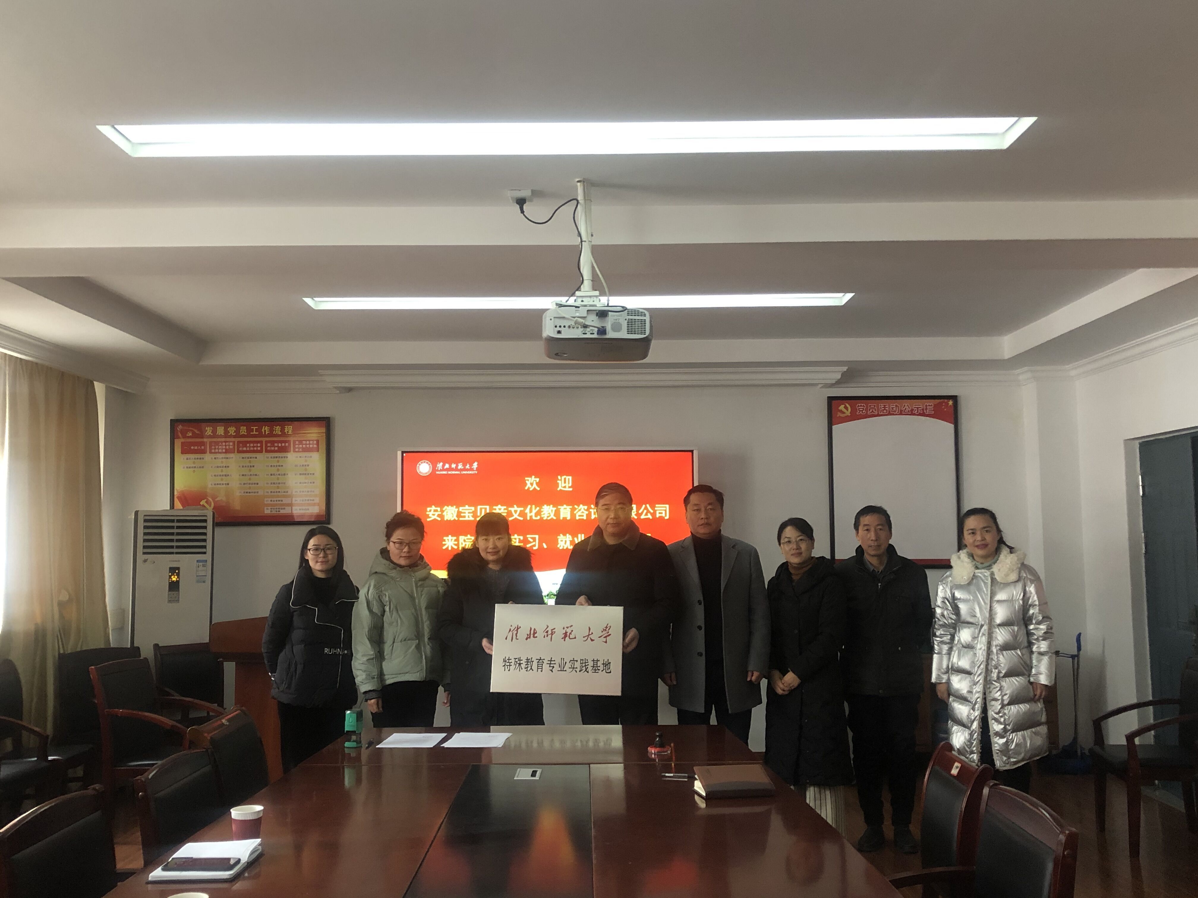2020年12月17日上午,安徽宝贝亲文化教育咨询有限公司濉溪县分校代表王玉主任一行到我院洽谈实习就业基地建设。安徽宝贝亲文化教育咨询有限公司成立于2012年12月,拥有“宝贝亲”品牌,有合肥市蜀山区宝贝亲特殊儿童康复中心、濉溪县宝贝亲特殊儿童康复中心、马鞍山残疾人咨询有限公司和岳西县宝贝亲儿童康复中心四家康复中心,分别参加了中残联民生工程听力、智力、孤独症和脑瘫残疾儿童康复项目,是安徽省残疾人联合会网上公示的残疾儿童康复定点机构,也是在机构所在地市残疾人联合会备案并挂牌的残疾儿童康复定点机构。院长王家云、副院长张家年、张坤颖、副书记鹿荣建、特殊教育系主任蔺红春等出席了本次会议。此次洽谈会由蔺红春主任主持。