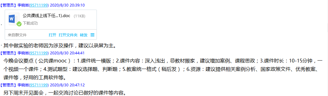 8月30日,教育技术学教研室在开学前夕就这一个主题利用QQ平台展开线上研讨,各位教师积极发言,结合自己的线上教学经验提出见解。在学校教务处和教育学院相关领导的大力推动下,最终选择以受益面广的《现代教育技术》公共课作为试验田和突破口,以爱课程为线上平台,实施线上线下混合教学。