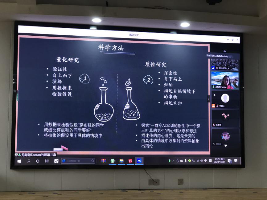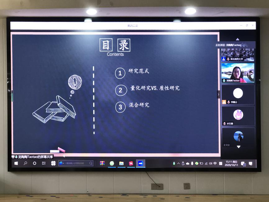 我院与华中师范大学《教育研究方法》协同讲座第二场于10月11日下午15:00在特教楼南配202教室进行。讲座主讲人依然是华中师范大学教育信息技术学院科学教育与传播专业硕士生导师龙陶陶博士,讲座主持人是教育学院教育技术学学位点负责人、硕士生导师张琪老师。本次协同讲座通过腾讯视频会议进行。参会对象包括教育学院研究生和华中师范大学的部分学生。
