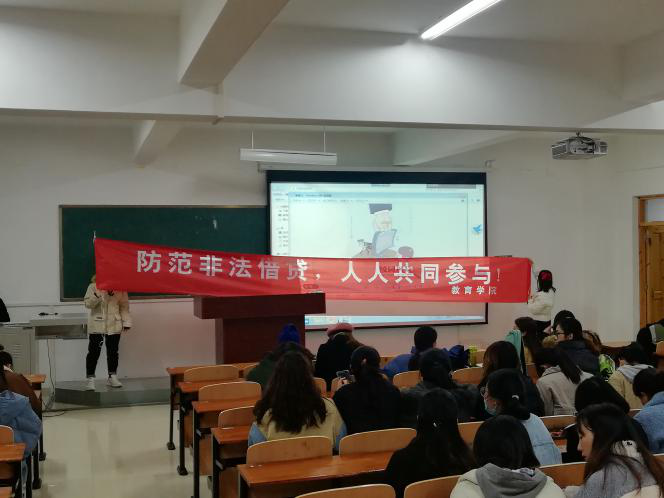 为了进一步增强学生安全防范意识与法律意识,坚决抵制不良校园贷、套路贷的侵害,引导学生养成合理消费观念,我院于2020年11月21日晚7点半在特教楼北配501举办“校园贷、套路贷防范宣传教育”的主题班会。班会由研究生党支部副书记宋文平主持,参与对象为教育学院2019级、2020级全体研究生。