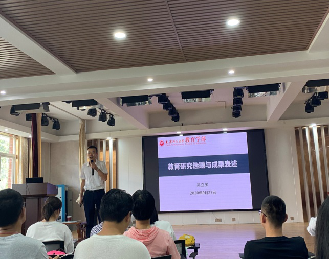 为推动教育学院学生研究创新能力的发展,进一步提高学术论文的规范性。2020年9月27日下午,教育学院特邀天津师范大学教育学部博士生导师吴立宝教授、天津师范大学教育学部小学教育系主任张新颜教授,在滨湖校区特教楼二楼演播厅举办了《(数学)教育研究选题与成果表达》《学术研究创新与学术论文规范》两场学术报告。教育学院研究生参加了本次报告会,会议由教育学院院长王家云主持。