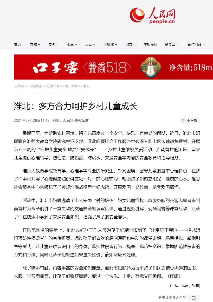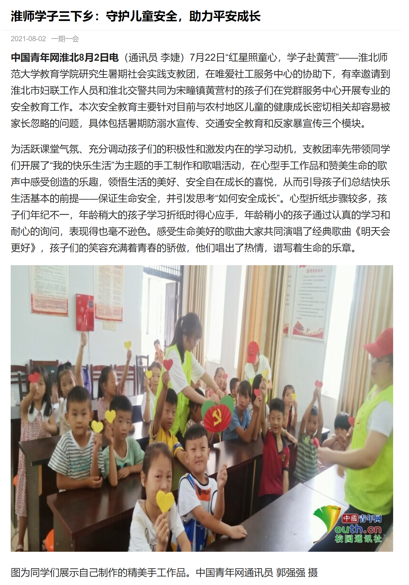 8.2号:中国青年网:淮师学子三下乡:守护儿童安全,助力平安成长