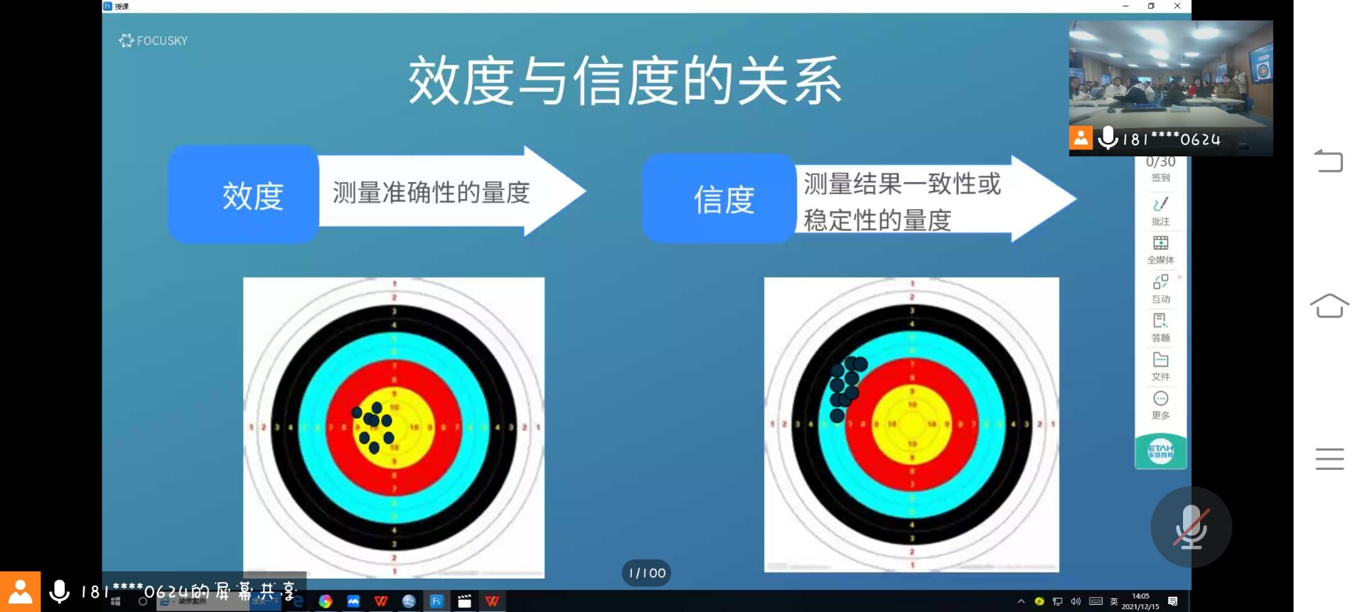 梅松竹的授课内容为“教育测量与评价的质量特性——效度”,示范课从精炼的、专业的、示范性说课引入,然后从为何要研究效度、效度的内涵、效度的分类、效度的证据以及效度与信度的关系五方面来讲授课程。他以问题为导向,以学生为中心,以方法为引领,以素养为目标,融思政元素于无声处,深入浅出地将一个枯燥、复杂的教育统计学问题讲得清晰易懂,整堂课逻辑思维严密,讲解深入浅出,充分体现“金课”的两性一度的教学原则,学生在思想、知识、技能、情感诸方面收获良多。在遇到难以理解的知识点时,梅松竹用形象生动的案例来解释晦涩难懂的概念,如打靶实验,不仅使大家清晰地理解了效度与信度的关系,而且拓宽教育视野。他还不时地与学生进行互动,引发积极思考,鼓励大胆表达,学生参与度高,课堂效果非常好。