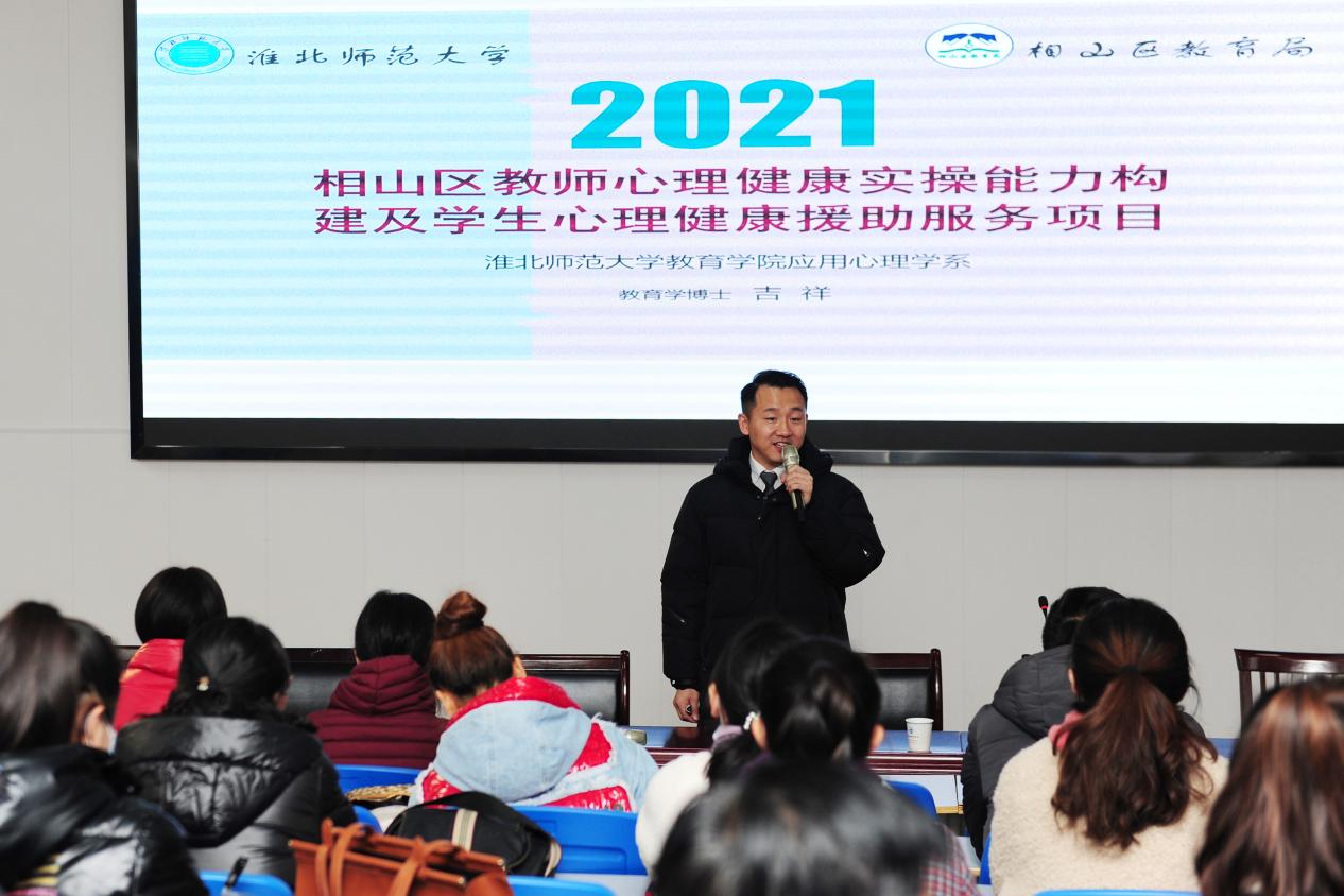 启动仪式结束后,项目负责人吉祥博士为全区各中小学校推选的74名心理健康教育负责教师开展专题讲座,相山区项目负责人及分管领导共同参加了心理健康实操能力构建的主题讲座。